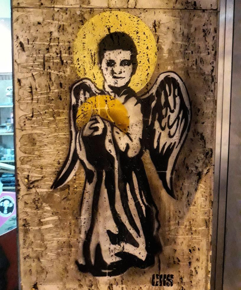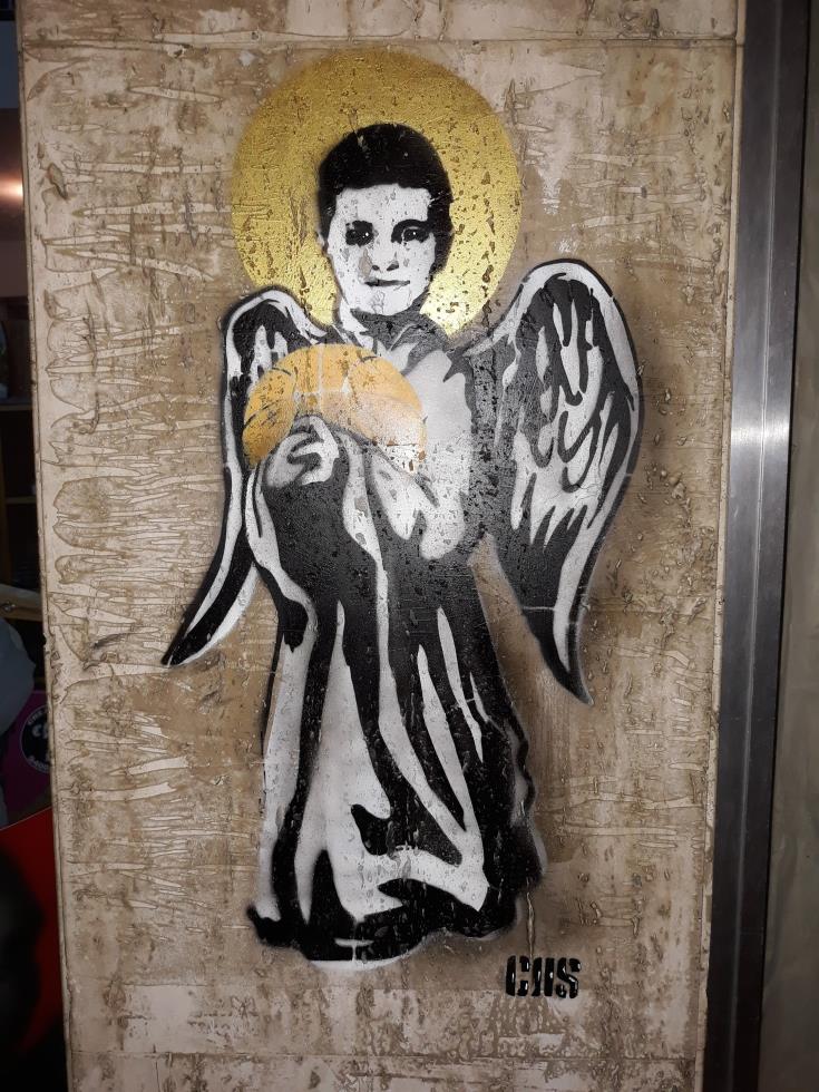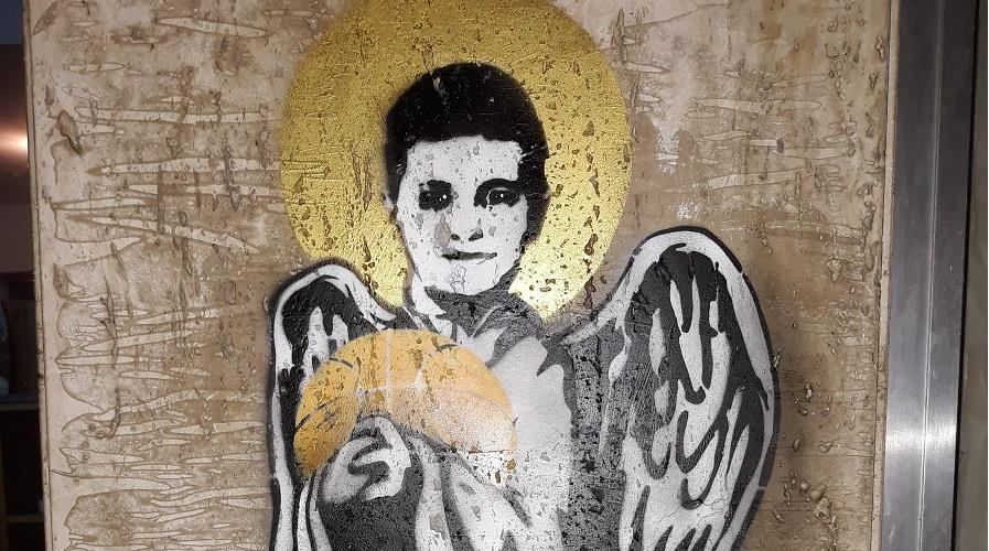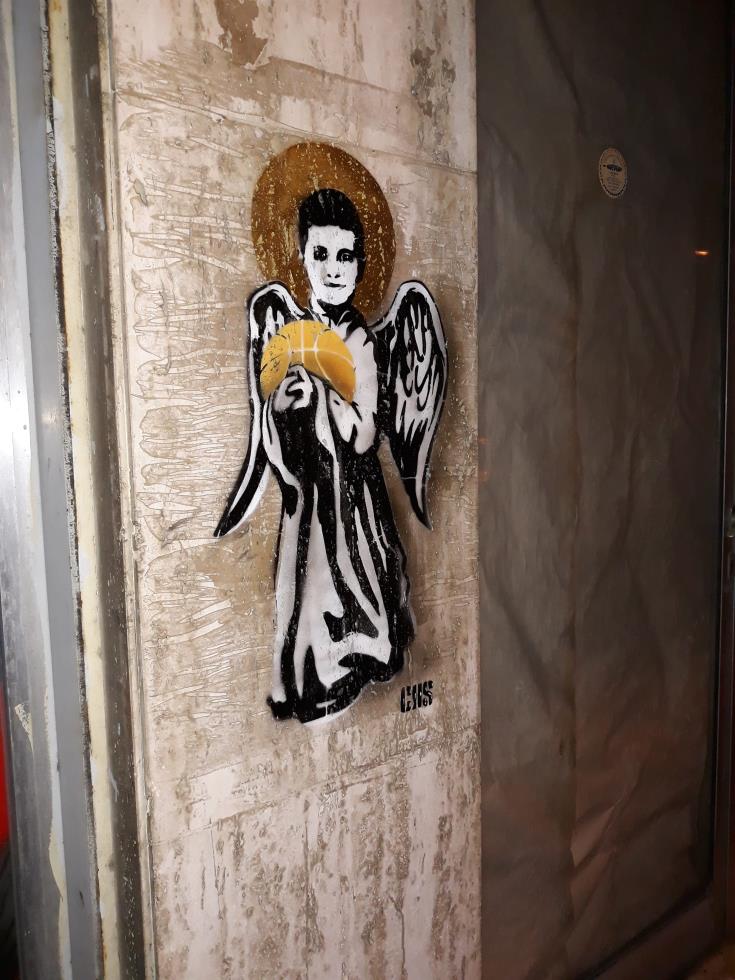 Όπως θα δείτε στις φωτογραφίες όπου απεικονίζεται το graffti, φαίνεται ένα μικρό αγγελάκι που κρατάει μπάλα του καλαθόσφαιρας.