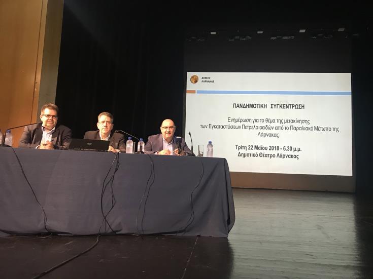 Τη θέση ότι την ευθύνη για τη μετακίνηση των εγκαταστάσεων πετρελαιοειδών και υγραερίου από το παραλιακό μέτωπο της Λάρνακας και μεταφορά τους στο Βασιλικό έχουν η Κυβέρνηση και οι εταιρείες εξέφρασαν απόψε οι Λαρνακείς.
