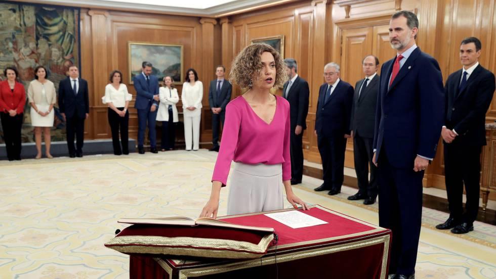 Σε μια μεγάλη αίθουσα του Παλατιού της Θαρθουέλα βορειοδυτικά της Μαδρίτης, ένα ένα τα μέλη του υπουργικού συμβουλίου του Σάντσεθ ορκίστηκαν πίστη στον βασιλιά Φελίπε τον 6ο και δεσμεύτηκαν "να σέβονται και να επιβλέπουν τον σεβασμό του Συντάγματος", το οποίο οι αποσχιστές της Καταλονίας δεν αναγνωρίζουν πλέον. Επρόκειτο για μια τελετή που έσπασε άλλη μια παράδοση, καθώς έγινε απουσία θρησκευτικών συμβόλων.