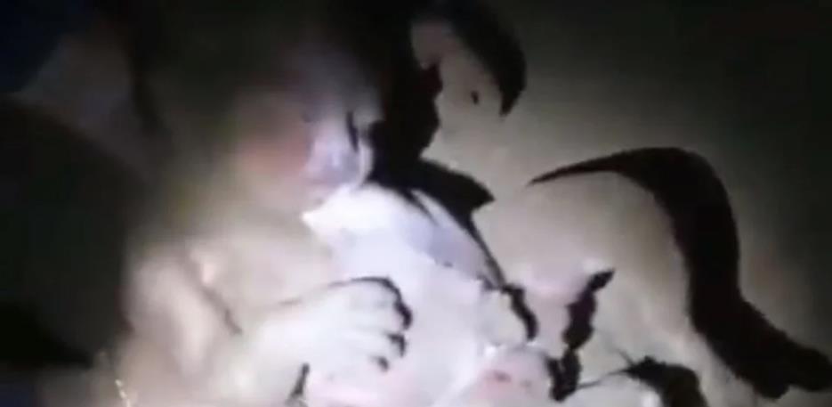 Οι αρχές έδωσαν στη δημοσιότητα ένα βίντεο το οποίο δείχνει τους αστυνομικούς να σκάβουν στην άμμο για να σώσουν το νεογέννητο, ο ομφάλιος λώρος του οποίου δεν είχε ακόμη κοπεί.