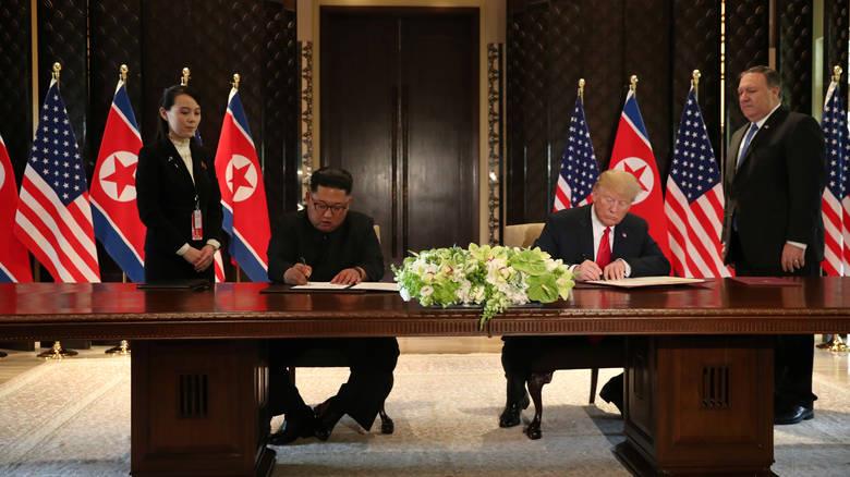 Ο πρόεδρος Ντόναλντ Τραμπ των Ηνωμένων Πολιτειών της Αμερικής και ο πρόεδρος της Επιτροπής Κρατικών Υποθέσεων της Λαϊκής Δημοκρατίας της Κορέας είχαν μία πρώτη, ιστορική συνάντηση κορυφής στην Σιγκαπούρη στις 12 Ιουνίου 2018.