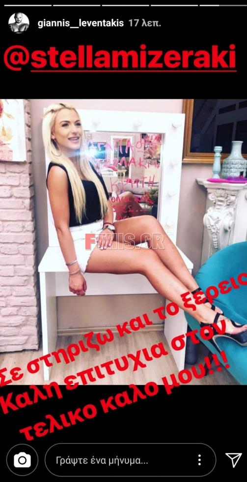 Αυτή η φιλική σχέση φαίνεται και από τη δημόσια στήριξη που ο Γιάννης Λεβεντάκης δείχνει στη πρώην κοπέλα του. Χαρακτηριστικό παράδειγμα το story που ανέβασε στον προσωπικό του λογαριασμό στο instagram γράφοντας «Σε στηρίζω και το ξέρεις. Καλή επιτυχία στον τελικό καλό μου».
