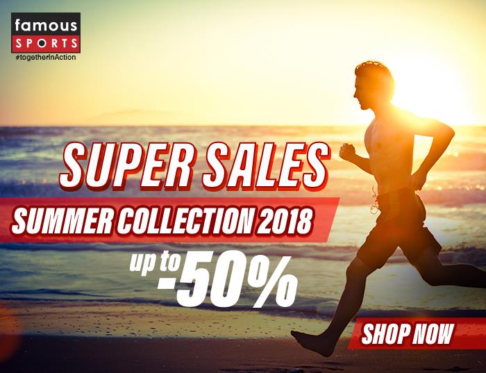 Είναι γεγονός! Οι καλοκαιρινές εκπτώσεις που όλοι περιμένατε με ανυπομονησία, έχουν μόλις ξεκινήσει σε όλα τα καταστήματα Famous Sports από την Πέμπτη 21 Ιουνίου 2018! Μέσα από τις πλούσιες συλλογές των καταστημάτων μας, επιλέξτε τα αγαπημένα σας αθλητικά είδη σε απίστευτες τιμές έκπτωσης μέχρι και 50%!