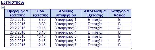 Σημειώνεται ότι στο ημερήσιο πρόγραμμα εξεταζόμενων στις 20.2.2016 υπογράφει ως υπεύθυνος κλήρωσης ο συγκεκριμένος εξεταστής, ο οποίος είχε μια αποτυχημένη εξέταση στις 8 εξετάσεις που διενήργησε την ημέρα αυτή.