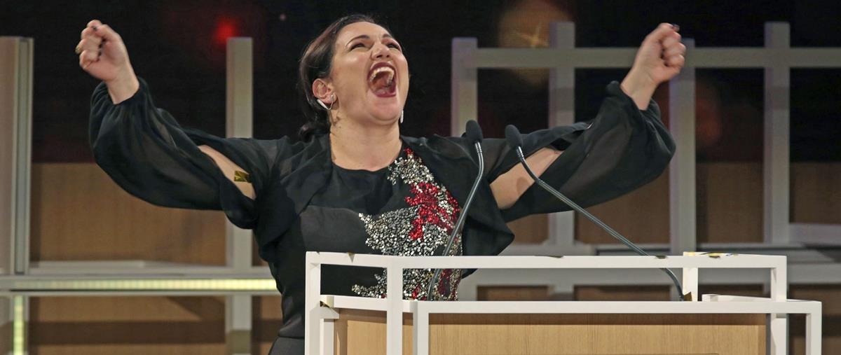 Περιστοιχισμένη από μαθητές της, συναδέλφους της, μέλη της οικογένειάς της και υποστηρικτές της, η Άντρια Ζαφειράκου έκανε την ανακοίνωση στο κτιριακό συγκρότημα του σχολείου της την Τρίτη.