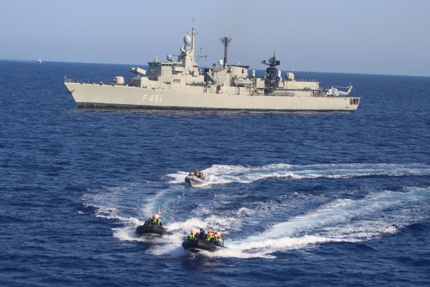 Και πρόσθεσε: «Η συνεργασία επί της θάλασσας και μαζί με τις δυνάμεις του αέρα έχουν αποδείξει ότι μπορούμε όλοι μαζί να δείξουμε μία σταθερότητα στην περιοχή, και η οποία σταθερότητα θα φέρει κατ’ επέκταση την ανάπτυξη, την ασφάλεια και την ειρήνη που όλοι επιδιώκουμε».