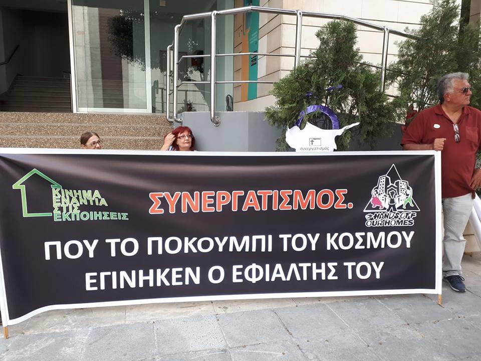 Με εκδήλωση που ξεκίνησε στις 10 το πρωί το Κίνημα Ενάντια στις Εκποιήσεις διαμαρτύρεται, για το ξεπούλημα, όπως το χαρακτηρίζει του Συνεργατισμού.