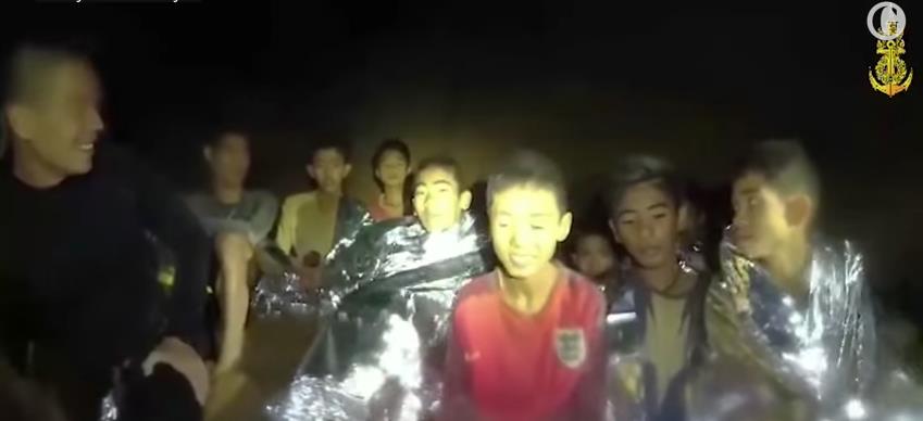 Η εικόνα των παιδιών ενθουσίασε το έθνος της Ταϊλάνδης, που αναμένει τη διάσωση των παιδιών που βρίσκονται μερικά χιλιόμετρα εντός του σπηλαίου, που είναι ένα από τα μακρύτερα στη χώρα.