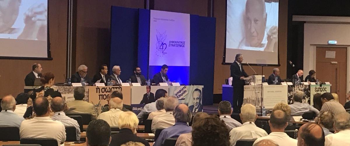Και σε αυτή την πορεία για την Κύπρο του αύριο η παράταξη μας έχει πρωταγωνιστικό ρόλο, βρισκόμενη στο επίκεντρο της πολιτικής ζωής του τόπου. Ο Δημοκρατικός Συναγερμός καλείτε να δηλώσει παρών στις ανάγκες τις χώρας. Όπως διαχρονικά έπραττε. Και για να συνεχίσουμε να είμαστε ωφέλιμοι για τη χώρα χρειάζεται να εκσυγχρονιστούμε και να εμπλουτίσουμε την παράταξη μας με τις κατάλληλες δομές. Για να συνεχίσει να παίρνει την χώρα μπροστά.