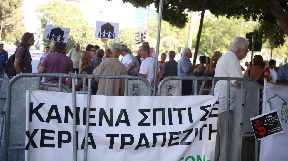 Μεταξύ άλλων τα πανό αναφέρουν «κανένα σπίτι στα χέρια των τραπεζών».