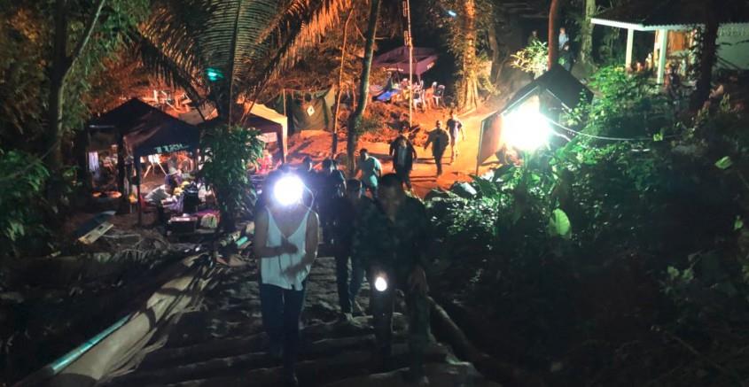 Η ομάδα των νεαρών ποδοσφαιριστών είναι περίπου δύο χιλιόμετρα πιο μακριά. Μέχρι στιγμής οκτώ από τα δώδεκα παιδιά έχουν διασωθεί, ενώ σήμερα ξεκινά η τρίτη φάση της επιχείρησης για τον απεγκλωβισμό των υπολοίπων και του προπονητή τους.