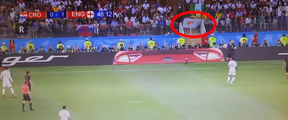 Την ίδια ώρα ωστόσο, το παρών τους στα γήπεδα της Ρωσίας φαίνεται να δίνουν και άλλοι Κύπριοι, καθώς κατά τη διάρκεια της σημερινής (11/7) αναμέτρησης, μια κυπριακή σημαία ήταν ευδιάκριτη στην κερκίδα του επιβλητικού σταδίου, Λουζνικί.