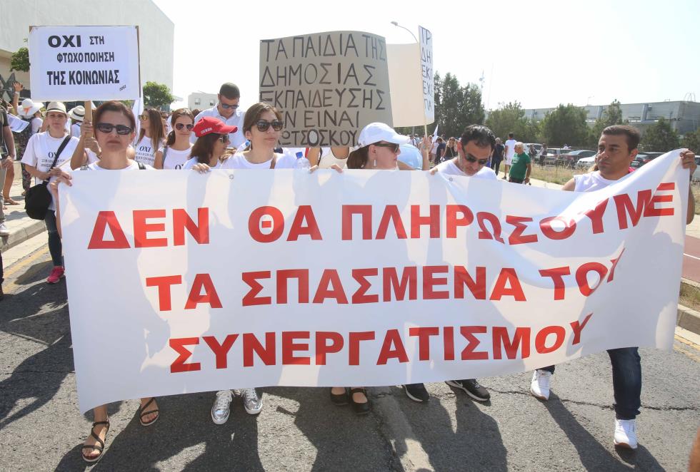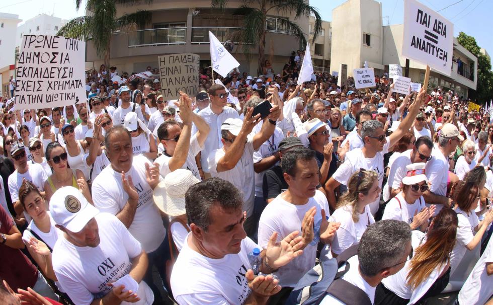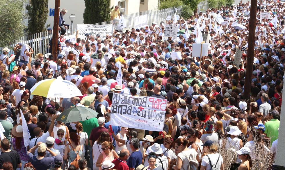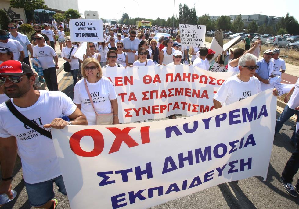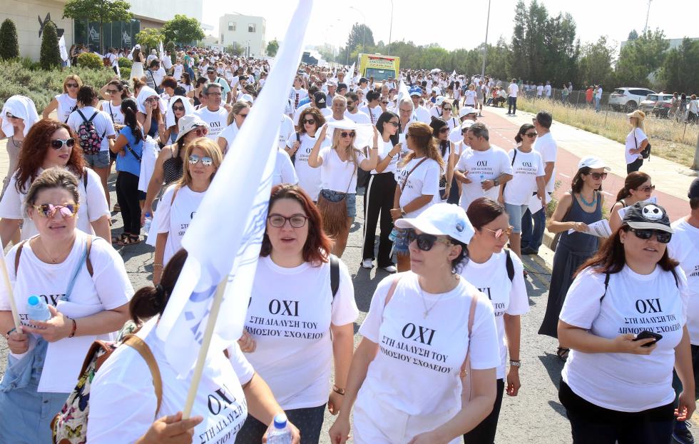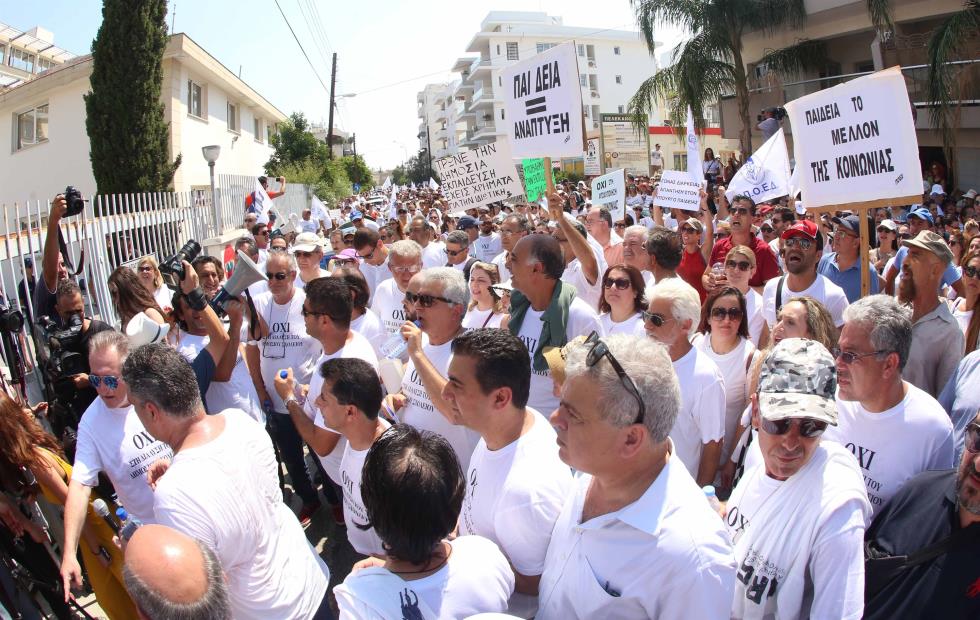 Μια άνευ προηγουμένου εκδήλωση διαμαρτυρίας πραγματοποίησαν οι εκπαιδευτικοί όλων των βαθμίδων σήμερα, διαδηλώνοντας κατά των πρόσφατων προτάσεων του Υπουργού Παιδείας Κώστα Χαμπιαούρη, οι οποίες επικυρώθηκαν από το Υπουργικό Συμβούλιο.