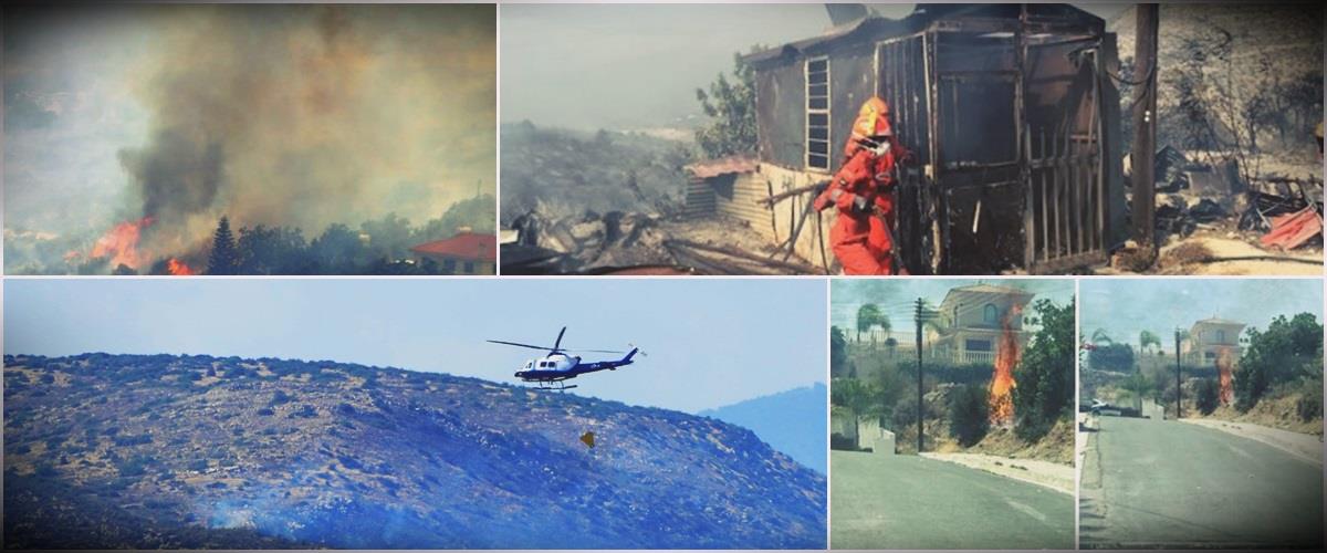 Εκτός ελέγχου μαίνεται από της μια το μεσημέρι η πύρινη λαίλαπα που ξέσπασε βορειοδυτικά της Γερμασόγιας Επαρχίας Λεμεσού – Ακρούντα και η οποία βρίσκεται σε απόσταση αναπνοής από κατοικίες.