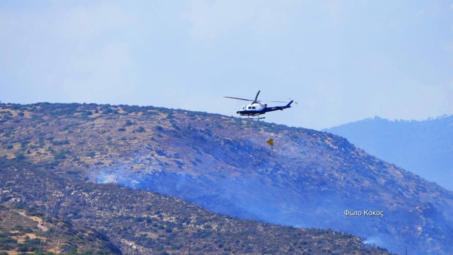 Από πλευράς επίγειων μέσων πυρόσβεσης, εργάστηκαν 17 οχήματα της Πυροσβεστικής Υπηρεσίας, οκτώ από το Τμήμα Δασών, δυο της Επαρχιακής Διοίκησης, τρία της Πολιτικής Άμυνας και ένα του Ταμείου Θήρας, καθώς και εθελοντικές ομάδες.