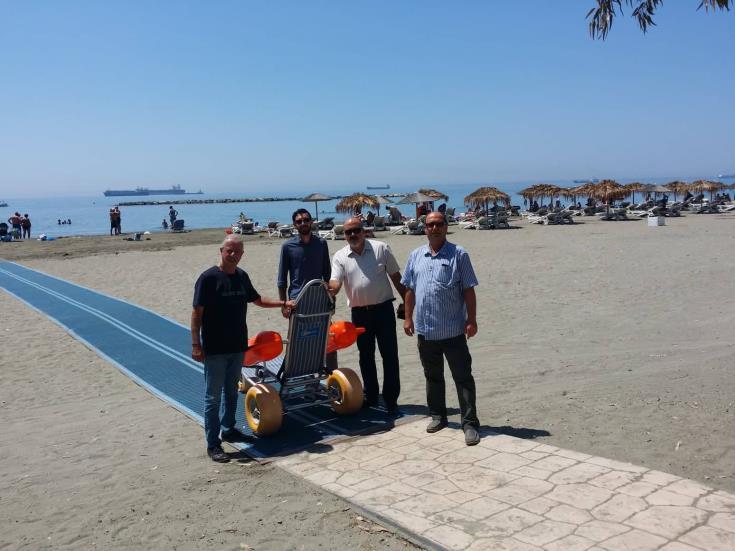 Επίσης, ο Δήμος έχει προχωρήσει στη βελτίωση της πρώτης ράμπας πρόσβασης προς την παραλία και στην τοποθέτηση ειδικού τάπητα που κατευθύνεται προς τη θάλασσα και προορίζεται για χρήση από ειδικά αμαξίδια. Παράλληλα ο Δήμος έχει προμηθευτεί δύο ειδικά αμφίβια αμαξίδια τα οποία θα μπορούν να χρησιμοποιούν τα άτομα με κινητικά προβλήματα, παρέχοντας τους τη δυνατότητα να απολαύσουν το μπάνιο τους στην θάλασσα.  Σύμφωνα με τον Νίκο Νικολαίδη, πολύ σύντομα θα παραδοθεί και τρίτο παρόμοιο αμαξίδιο. Τα αμαξίδια θα ελέγχονται από τους ναυαγοσώστες οι οποίοι βρίσκονται σε απόσταση 50 μέτρων από τις ειδικές ράμπες.