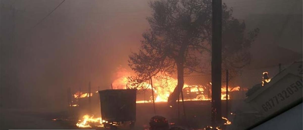 Σε πύρινη κόλαση με δεκάδες σπίτια και αυτοκίνητα καμμένα έχει μετατραπεί η περιοχή Μάτι, μέσα από την οποία πέρασε το μέτωπο της φωτιάς που μαίνεται στην ευρύτερη περιοχή της Ραφήνας.