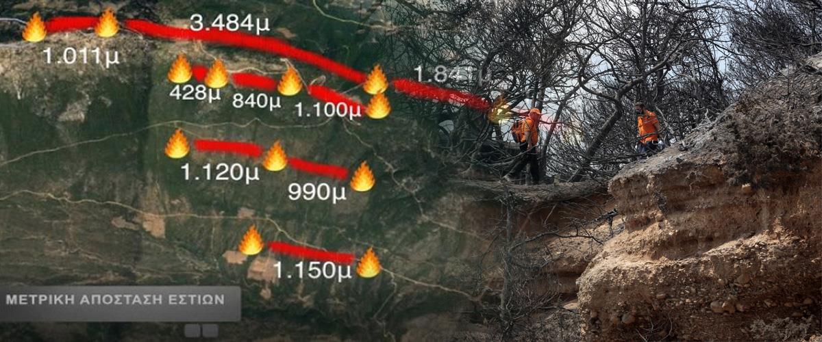 Σημειώνεται ότι τα ανωτέρω θερμικά σημεία, όπως αποτυπώνονται από τη δορυφορική απεικόνιση, βρίσκονται σε νοητές και παράλληλες ευθείες κοντά σε οδικό δίκτυο που απέχουν μεταξύ τους περίπου 1.100μ και επισημαίνεται η χρονικά σχεδόν ταυτόσημη εκδήλωση των θερμικών εστιών.