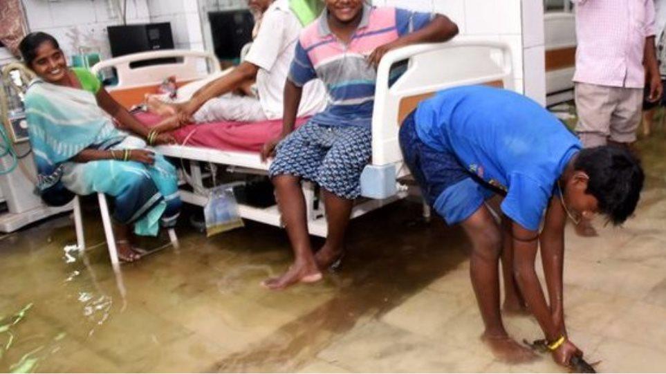 Πλημμύρισε νοσοκομείο από τις βροχοπτώσεις στην Ινδία