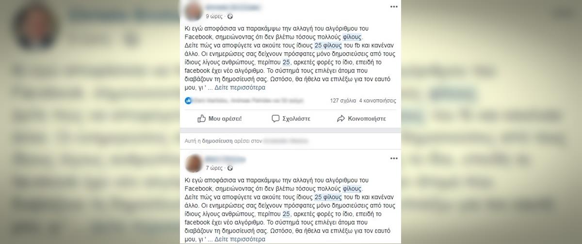 «Κι εγώ αποφάσισα να παρακάμψω την αλλαγή του αλγόριθμου του Facebook, σημειώνοντας ότι δεν βλέπω τόσους πολλούς φίλους.