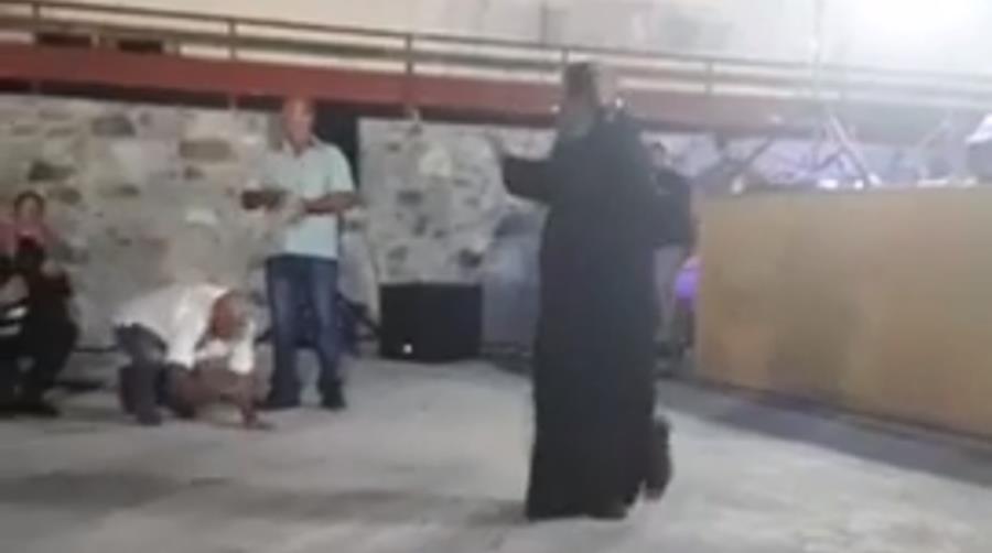 Ο ιερέας χόρεψε άψογα το ζεμπέκικο «Είμαι της γερακίνας» γιος με το κοινό να τον χειροκροτεί.