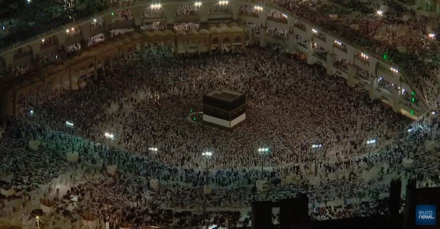 Η τελετή ξεκίνησε την Παρασκευή, με την περιστροφή των πιστών, από τα αριστερά προς τα δεξιά, γύρω από την Κάαμπα, το πιο ιερό μέρος του Ισλάμ.