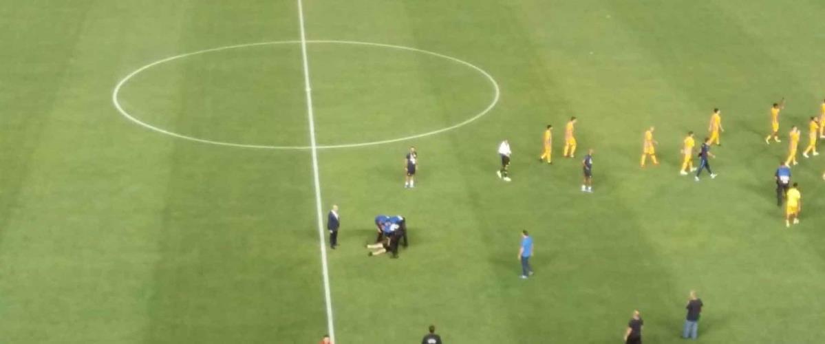 Άμεσα τον μάζεψαν στιούρτατς που τον μετέφεραν εκτός αγωνιστικού χώρου από τη βόρεια εξέδρα.