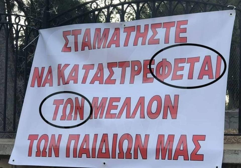 Σύμφωνα με τους διοργανωτές της εκδήλωσης, ένα πρόσωπο κρέμασε το πανό, πάνω στα κάγκελα του Προεδρικού. Σημειώνεται πως το πανό, όπως καταγγέλλουν οι διοργανωτές, είχε σκόπιμα ορθογραφικά λάθη.