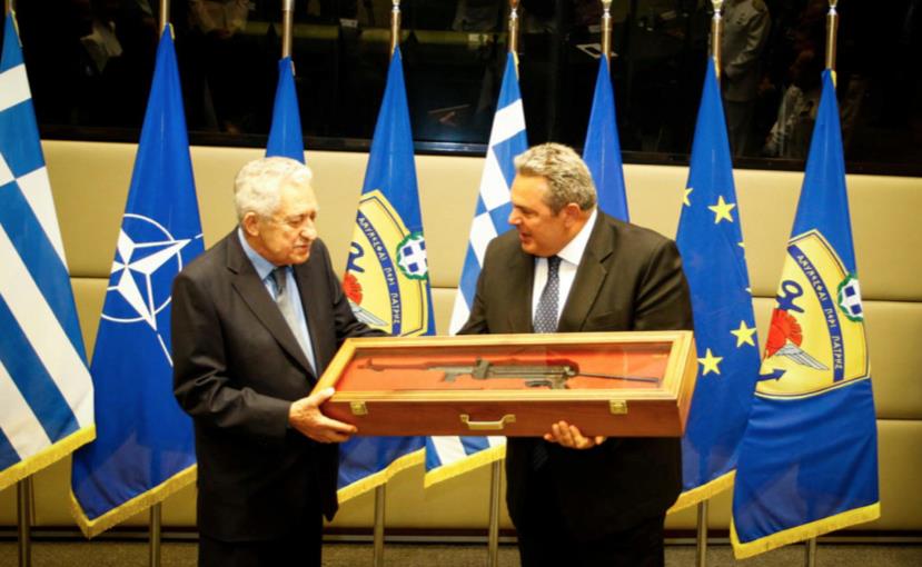 Αίσθηση προκάλεσε η κίνηση του Έλληνα Υπουργού Άμυνας να αποχαιρετήσει τον απερχόμενο στη θέση αναπληρωτή Υπουργού Άμυνας, και νυν Υπουργού Ναυτιλίας, Φώτη Κουβέλη κάνοντάς του δώρο... ένα καλάσνικοφ!