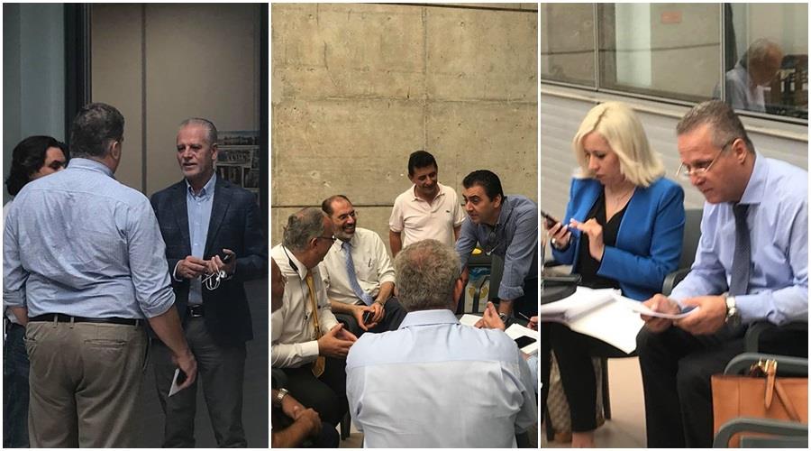Ως εκ τούτου, στον απόηχο των εξελίξεων, στήθηκαν πηγαδάκια στο αίθριο της Βουλής μέχρι την έναρξη της συνεδρίας.