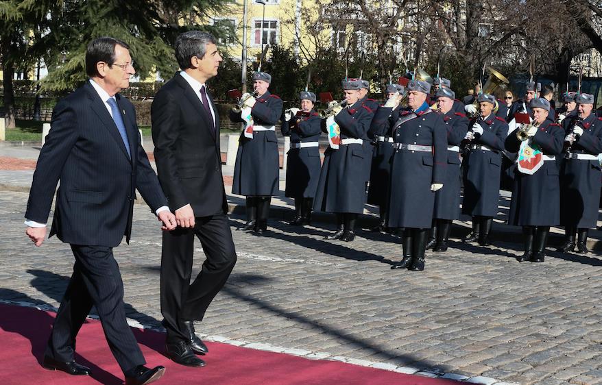 Να πούμε ότι νωρίτερα, πραγματοποιήθηκε η επίσημη τελετή υποδοχής του Προέδρου της Δημοκρατίας στη Σόφια, όπου συνοδευόμενος από την σύζυγο του Αντρη Αναστασιάδη και τα μέλη της κυπριακής αντιπροσωπείας, μετέβη στην πλατεία St Aleksandar Nevski, όπου τον ανέμενε ο Πρόεδρος της Βουλγαρίας Rosen Plevneliev.