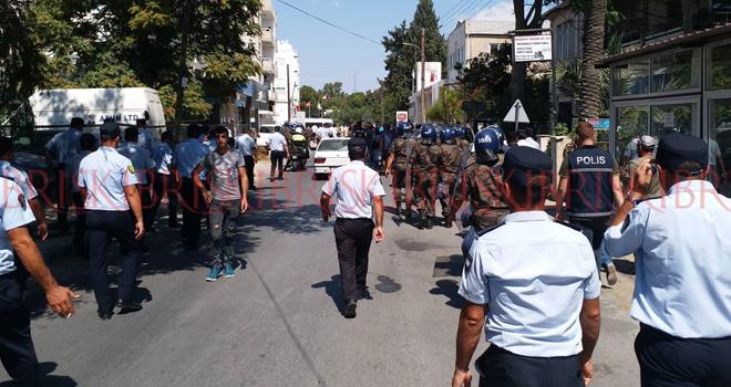 Στα φώτα τροχαία πριν από το οδόφραγμα, ισχυρές δυνάμεις της «αστυνομίας», των «δυνάμεων ασφαλείας» αλλά και «ειδικών δυνάμεων», ανέκοψαν την πορεία. Οι κτηνοτρόφοι θέλοντας να σπάσουν τον κλοιό ήρθαν στα χέρια με τους «αστυνομικούς» που χρησιμοποίησαν δακρυγόνα για να διαλύσουν το πλήθος. Σύμφωνα με την ιστοσελίδα της Χαμπέρ κίπρις, δημοσιογράφος της εφημερίδας και της τηλεόρασης Ντάιλογκ, λόγω των δακρυγόνων, μεταφέρθηκε με ασθενοφόρο στο νοσοκομείο.