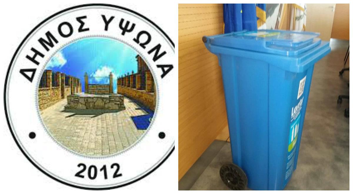 Με στόχο τη μείωση των αποβλήτων που καταλήγουν στις μονάδες ΧΥΤΥ και κατά συνέπεια τη μείωση του κόστους που ο πολίτης καλείται να πληρώσει στο τέλος του έτους, ο Δήμος Ύψωνα, άναψε το πράσινο φως για εφαρμογή του πρωτοποριακού προγράμματος ανταποδοτικής ανακύκλωσης με τη χρήση QR codes. Το πρόγραμμα περιλαμβάνει τη δωρεάν παραχώρηση δύο σκυβαλοδοχείων, ένα για χαρτί και ένα για πλαστικό, σε εκατό νοικοκυριά.