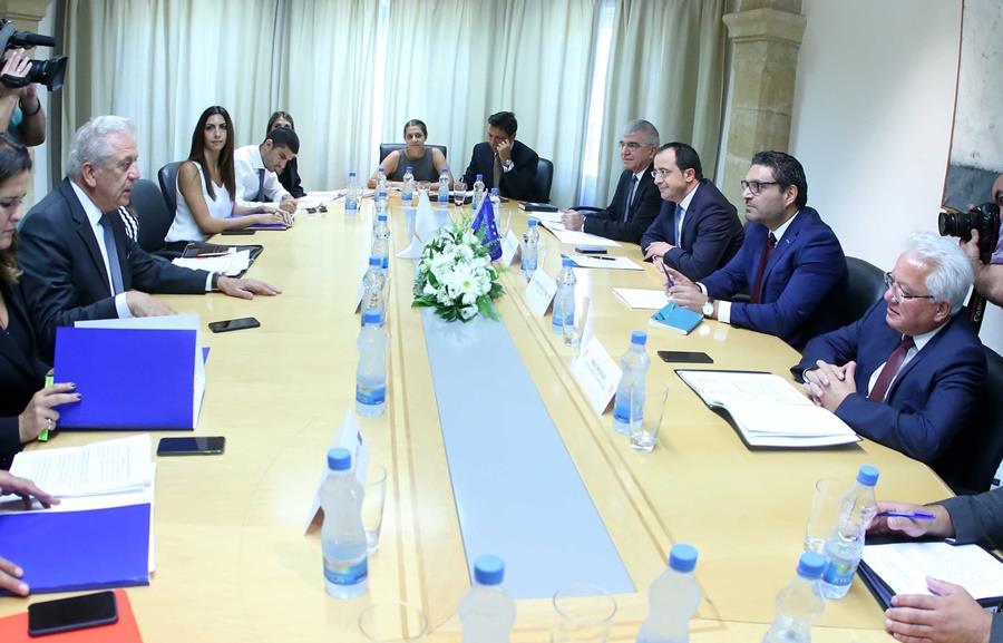 Ο κ. Αβραμόπουλος, ο οποίος επισκέπτεται την Κύπρο, συμφώνησε με την Διυπουργική Επιτροπή, που αποτελείτο από τρεις Υπουργούς, "να σταλεί άμεσα στην Κύπρο" κλιμάκιο και συνεργατών του από την Ευρωπαϊκή Επιτροπή ώστε να συζητήσουν με τις αρχές της Κύπρου, όπως είπε, για τη δημιουργία ενός πλαισίου συνεργασίας "έτσι ώστε να μην εκτεθεί η Κύπρος στο μέλλον σε μεγαλύτερες πιέσεις» από προσφυγικές ροές. Πρόσθεσε ότι το κλιμάκιο αυτό "φθάνει σε λίγες ημέρες και τα ζητήματα αυτά είναι στην κορυφή της διμερούς μας συνεργασίας».
