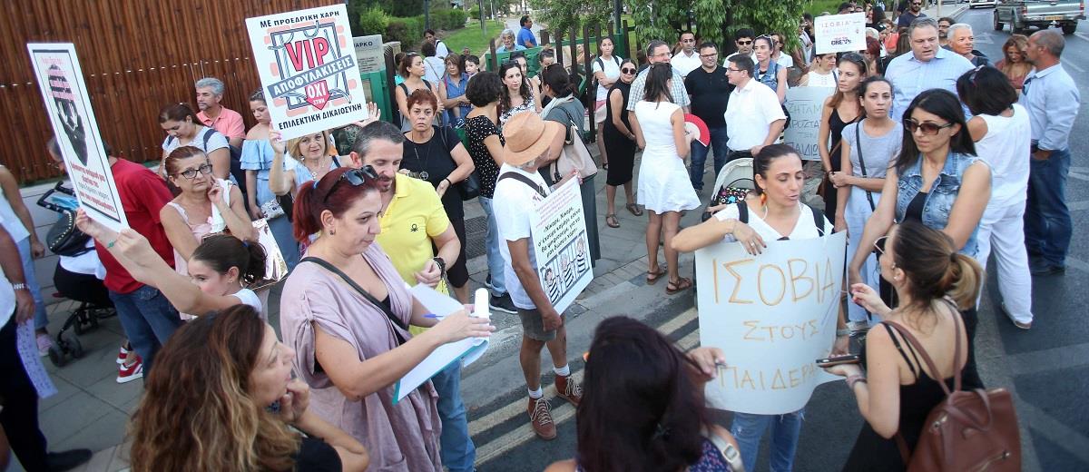 Διαμαρτυρία πραγματοποίησε το απόγευμα ομάδα πολιτών έξω από το Προεδρικό, με αφορμή την αποφυλάκιση παιδεραστή, η οποία προκάλεσε την οργή της κυπριακής κοινωνίας.