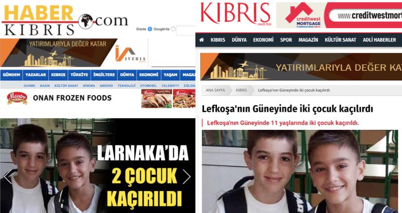 Πρώτο θέμα και στα κατεχομένα είναι η είδηση της εξαφάνισης των δύο 11χρονων αγοριών από το δημοτικό σχολείο Καμάρων στη Λάρνακα.
