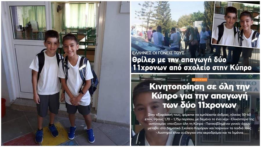 Σε συναγερμό τέθηκε από το πρωί η Αστυνομία στη Λάρνακα, καθώς όπως αναφέρεται, άγνωστος άνδρας απήγαγε δύο αγόρια 11 χρόνων, τον Θεμιστοκλή Ντόγκλη και τον Φίλιππο Σταματάκη.
