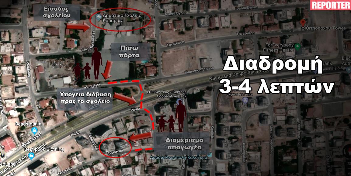 Σύμφωνα με τα υπό διερεύνηση στοιχεία, ο 35χρονος εξήλθε μαζί με τα παιδιά από την πίσω πόρτα του σχολείου, η οποία βρίσκεται σε απόσταση τριάντα δευτερολέπτων από την υπόγεια διάβαση.