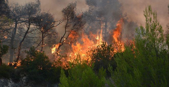 Μεγάλη πυρκαγιά βρίσκεται σε εξέλιξη σε δασική έκταση έξω από το χωριό Ζόλα, στη Κεφαλονιά. Οι δυνατοί βορειοανατολικοί άνεμοι που πνέουν στην περιοχή και φθάνουν τα 9 μποφόρ, εκτός ότι δυσκολεύουν το έργο των πυροσβεστών, μεταφέρουν πολύ γρήγορα την πυρκαγιά προς το οικισμό.
