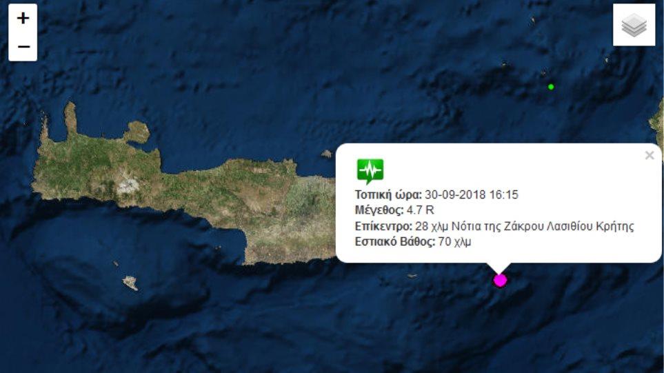 Το επίκεντρο εντοπίζεται 28 χλμ Νότια της Ζάκρου στο Λασίθι και είχε εστιακό βάθος 70 χιλιόμετρα.
