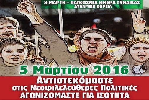 Με σύνθημα «Αντιστεκόμαστε στις νεοφιλελεύθερες πολιτικές, Αγωνιζόμαστε για Ισότητα», διεκδικούμε ίσα δικαιώματα για γυναίκες και άνδρες στην εργασία, την κοινωνία, την οικογένεια.