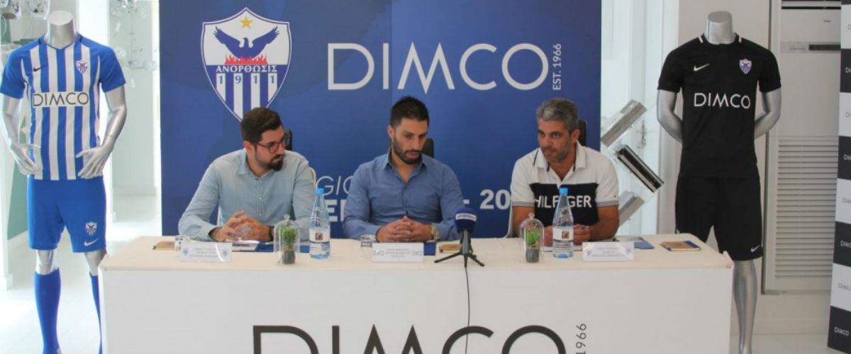 Σε δημοσιογραφική διάσκεψη που πραγματοποιήθηκε στο νέο κατάστημα της Dimco στη Λάρνακα (Λειβάδια), η Ανόρθωση παρουσίασε την χορηγική συνεργασία με την εταιρεία DIMCO.