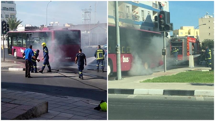 Στις φλόγες τυλίχθηκε εν κινήσει λεωφορείο έξω από την Πυροσβεστική στη Λάρνακα.
