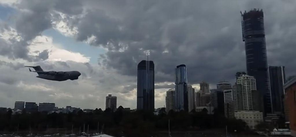 Πάγωσαν οι εργαζόμενοι στους ουρανοξύστες του Μπρισμπέιν της Αυστραλίας, όταν είδαν ένα αεροπλάνο της Βασιλικής Αυστραλιανής Πολεμικής Αεροπορίας να πετά λίγα μόλις μέτρα από τα παράθυρά τους.