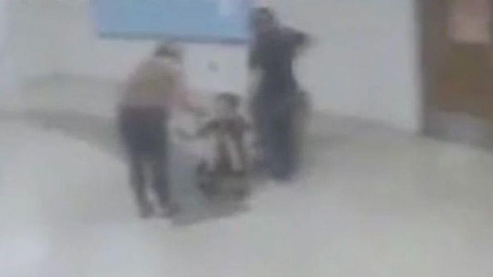 Το βίντεο καταγράφηκε από την κάμερα κλειστού κυκλώματος του σχολείου και δείχνει τις γυναίκες να σέρνουν το παιδάκι και μάλιστα μαζί με τον, ειδικά εκπαιδευμένο σκύλο, του.