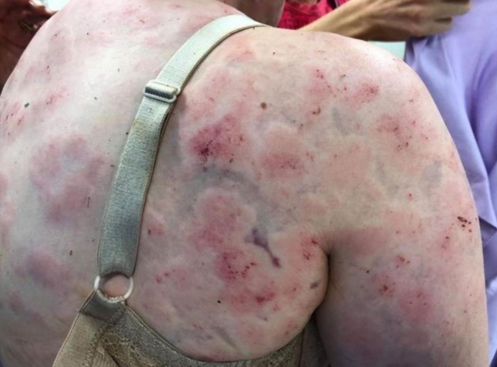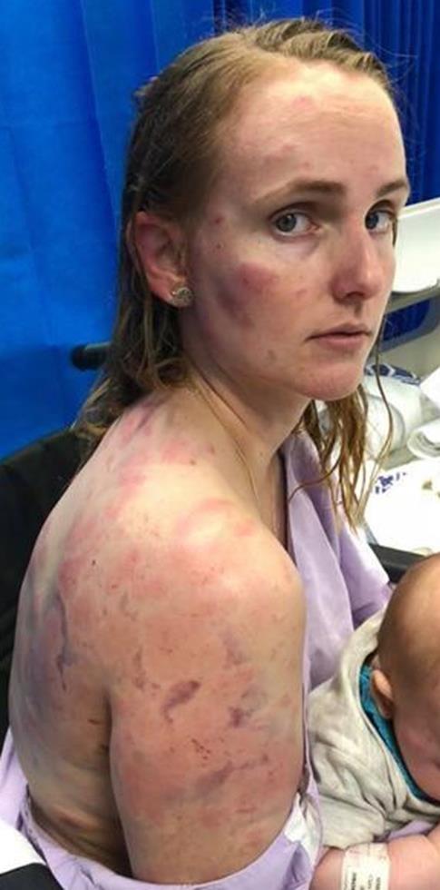 Η μητέρα δημοσιοποίησε στη συνέχεια τις φωτογραφίες από τα τραύματά της, με τους μώλωπες από το χαλάζι να καλύπτουν σχεδόν όλο της το σώμα, όμως ο ιερός σκοπός της είχε επιτευχθεί, καθώς το παιδί βγήκε σώο κι αγρατσούνιστο από την περιπέτεια αυτή.