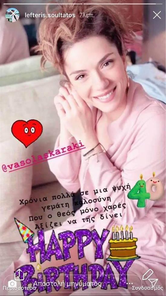 Ο Λευτέρης Σουλτάτος ευχήθηκε στη Βάσω Λασκαράκηχρόνια πολλά για τα γενέθλιά της αλλά της πρόσθεσε ένα χρόνο παραπάνω -Αναμένουμε την αντίδραση της ηθοποιού