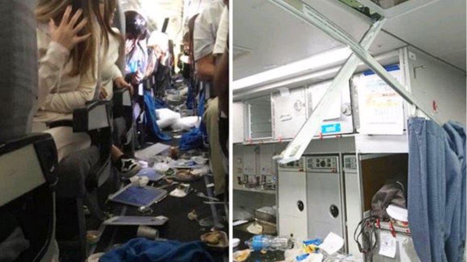 Αποτέλεσμα των αναταράξεων ήταν το να βρεθούν… στον αέρα τόσο οι επιβάτες όσο και διάφορα αντικείμενα και φαγητά.