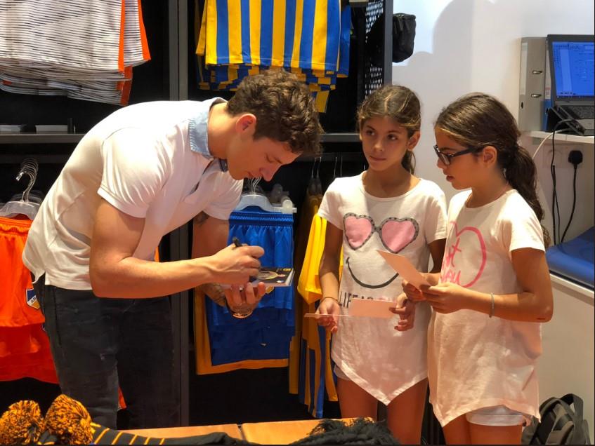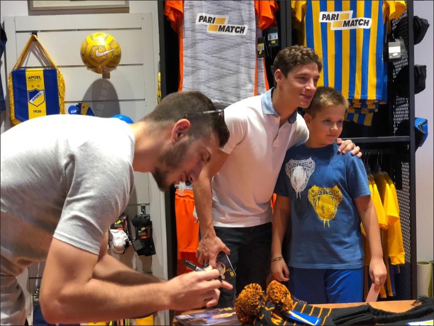 Ο Μηνάς Αντωνίου και ο Τόμας Ντε Βινσέντι, αμφότεροι εκτός πλάνων για το αυριανό εντός έδρας ντέρμπι με την ΑΕΛ στο ΓΣΠ, βρίσκονται αυτή την ώρα στην μπουτίκ του ΑΠΟΕΛ δίνοντας αυτόγραφα και βγάζοντας φωτογραφίες με τους φίλους της ομάδας.