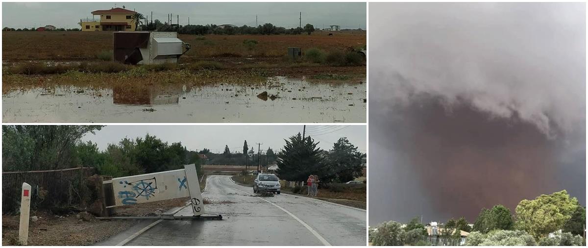 Εν τω μεταξύ ανεμοστρόβιλος στην περιοχή προκάλεσε ζημιές σε παρακείμενα χωράφια. Το σπάνιο φαινόμενο εμφανίστηκε γύρω στις 2 και 30 το μεσημέρι.